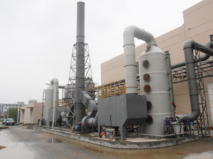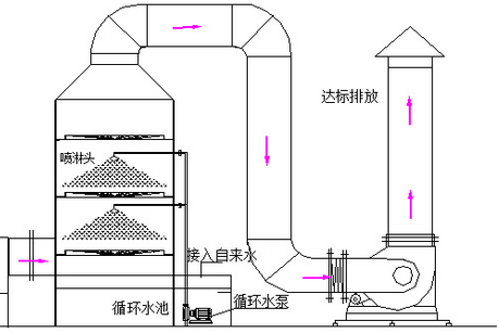 廢氣切向進(jìn)入旋流除塵器,除塵器內(nèi)部設(shè)計(jì)了多層塔盤結(jié)構(gòu),使氣流作螺旋形向上運(yùn)動(dòng),噴淋系統(tǒng)將吸收液噴灑在^高層塔盤盲板中心,從盲板分配到各葉片上,形成液膜并被氣流噴散成液滴。液滴與廢氣中的鋁粉相互碰撞、滯留,以及相互凝聚等凈化機(jī)理的共同作用,使粉塵與液滴充分混合,并混合液隨氣流一起旋轉(zhuǎn),^終被離心力摔到塔壁,形成液膜流下,經(jīng)集液槽、降液管流到下層塔盤盲板上,混合液再次從盲板分配到各葉片上,與鋁粉廢氣再次相互碰撞、滯留,凝聚,起到多層凈化處理的目的,其處理效率更高,而且設(shè)備壓損不大,能耗低。